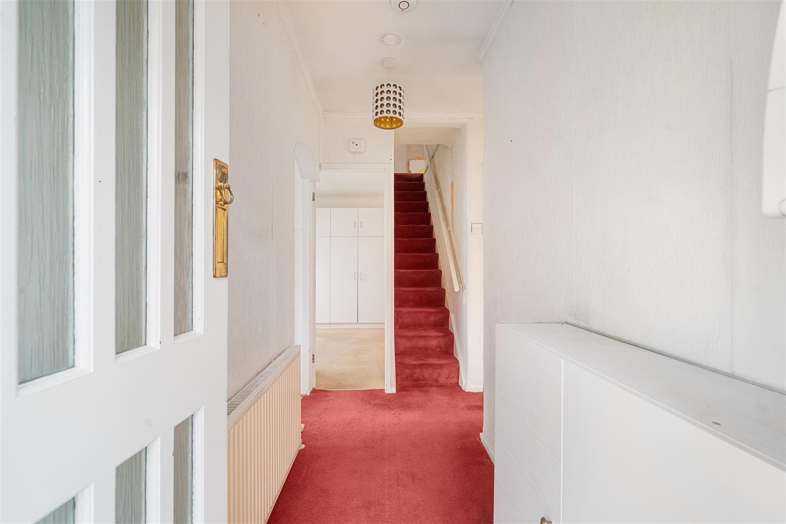 entrance door, radiator, stairs to loft room